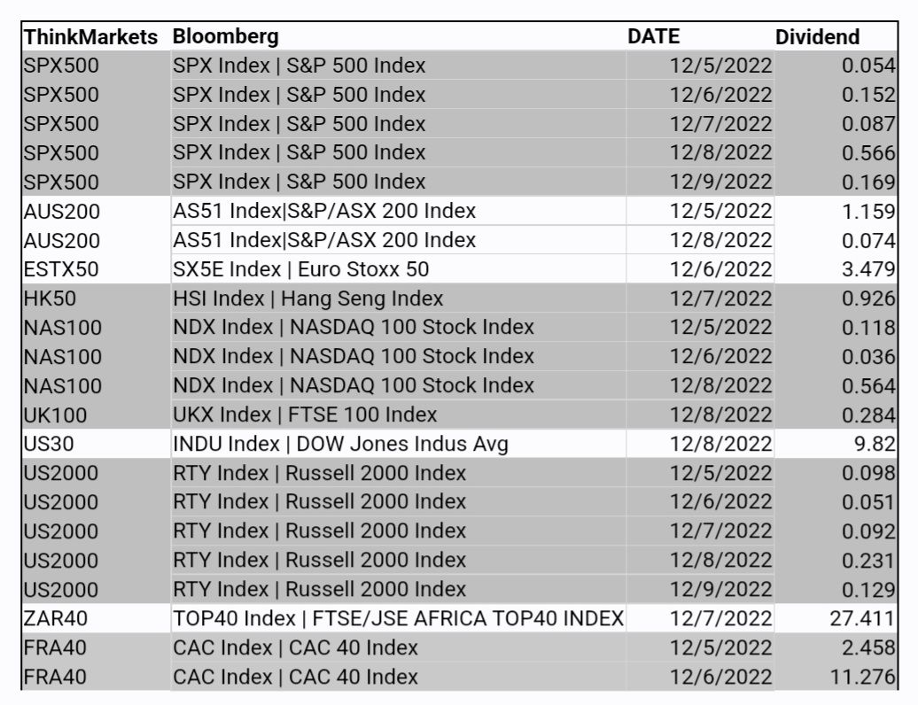 ThinkMarkets智汇平台CFD股指12月5日-12月9日股息结算明细