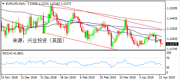 周二欧元/美元的进一步反弹动能被抑制,重新大幅下挫,最低触及三周低位1.1191,略收在1.12一线上方,跌幅为0.3%,维持长期下行走势。欧元重挫主要受到美元指数强势反弹的打压。市场波动性下降提振市场对高风险资产的需求,同时,在本周美国GDP数据公布前,市场对此的预期乐观,刺激了美元指数的买盘,美指一度刷新2017年6月以来的高点97.78,导致欧元大跌。日内可关注德国4月IFO商业景气指数,若数据符合或好预期,有望缓和市场对欧元区的担忧情绪,欧元或于低位反弹,反之亦然。欧洲时段可稍关注欧央行公布的经济公报。