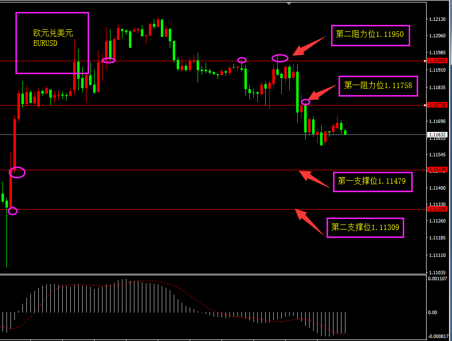 策略分析:第一支撑/第二支撑位附近看多至1.11758附近,期间出现大阴线则转为观望为主。