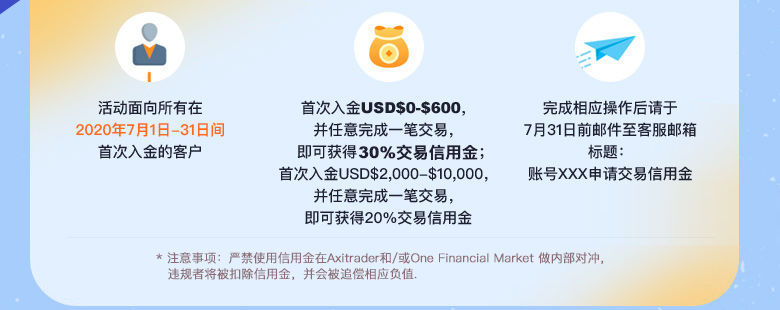 保证金交易存在极高的风险,未必适合所有的投资者,请不要轻信任何高额投资收益的诱导而贸然投资。 在您决定投资保证金交易时,需要提醒您:投资导致的损失可能超过您投入的资金,因此,请您考虑自身的投资经验及风险承担能力理性投资。投资风险不仅来自于杠杆交易本身,同时也有可能来自于券商平台的不确定性,请您仔细甄别、远离风险。所有投资者的交易帐户应仅限本人使用,不应交由第三方操作,对于任何接受第三方喊单、操盘、理财等操作的投资和交易,由此导致的风险和亏损由投资者个人自行承担。