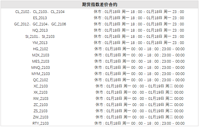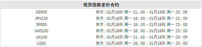 2021 年 1 月 18 日是即将到来的美国马丁路德纪念日,以下品种交易时间将发生变化(期间其他品种不会受到影响,均按正常交易时间交易)。 温馨提醒: 1. 以上所有时间均为服务器时间 (GMT+0,伦敦时间,与北京时间相差 8 小时) ; 2. 因节日到来,市场流动性稀薄,部分交易品种的点差可能会扩大,请您务必注意调整交易策 略,以规避风险; 3. 若以上信息后续发生变更,请以实际的信息为准。