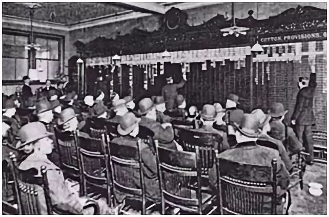 下图是20世纪初一个典型的投机商号,很多人都会去那里买卖股票和期货,这些投机商号独立于股票或期货交易所运作。他们在证券的价格变动上进行投机。投机商号给客户对赌商品及价格提供了便利场所,其性质与赌场基本类似。他们允许光顾商号的人在与别人社交的过程中,在观察他人之后,进行一系列小额的投注。而利弗莫尔正是在彼时与这些所谓的“投机商号”的对赌中赚到了钱,而这些所谓的对赌交易其实都是不合法的。