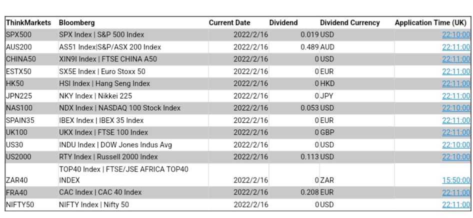 ThinkMarkets智汇平台CFD股指2月16日股息结算明细