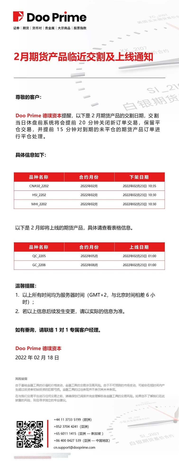 Doo Prime 2 月期货产品临近交割及上线通知