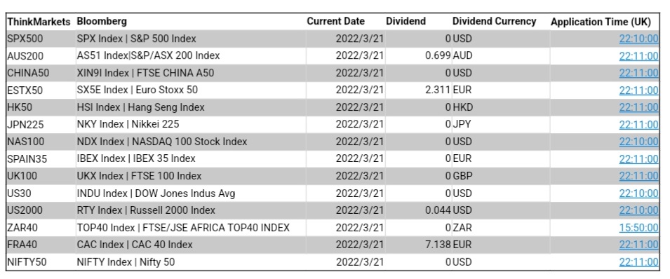 ThinkMarkets智汇平台CFD股指3月21日股息结算明细