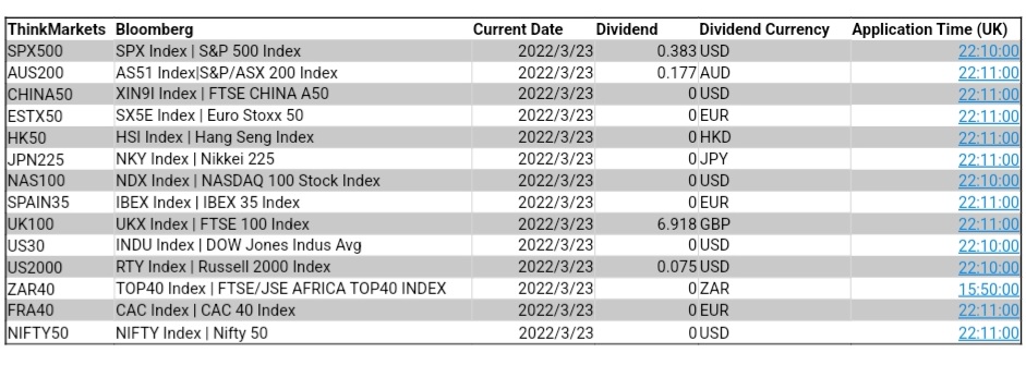 ThinkMarkets智汇平台CFD股指3月23日股息结算明细