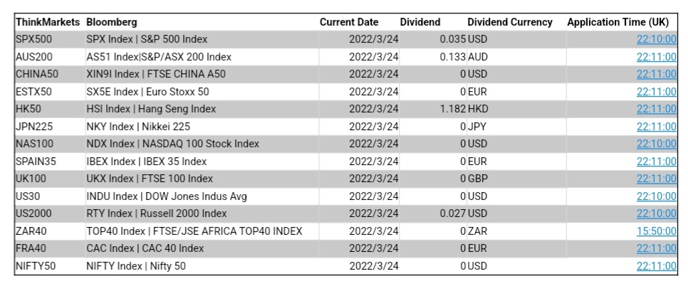 ThinkMarkets智汇平台CFD股指3月24日股息结算明细