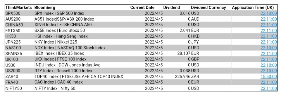 ThinkMarkets智汇平台CFD股指4月5日股息结算明细