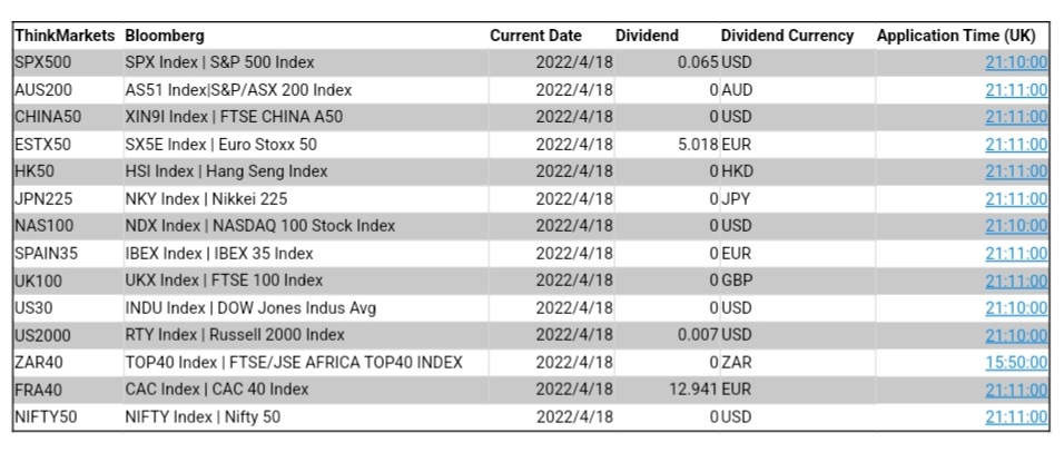 ThinkMarkets智汇平台CFD股指4月19日股息结算明细