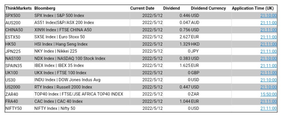 ThinkMarkets智汇平台CFD股指5月12日股息结算明细