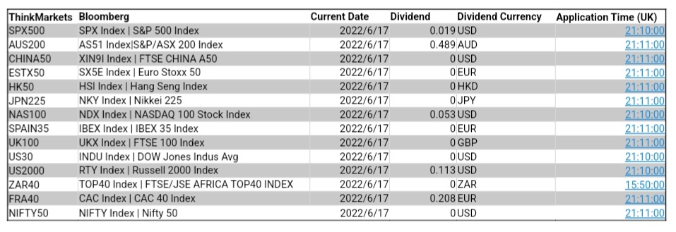 ThinkMarkets智汇平台CFD股指6月17日股息结算明细