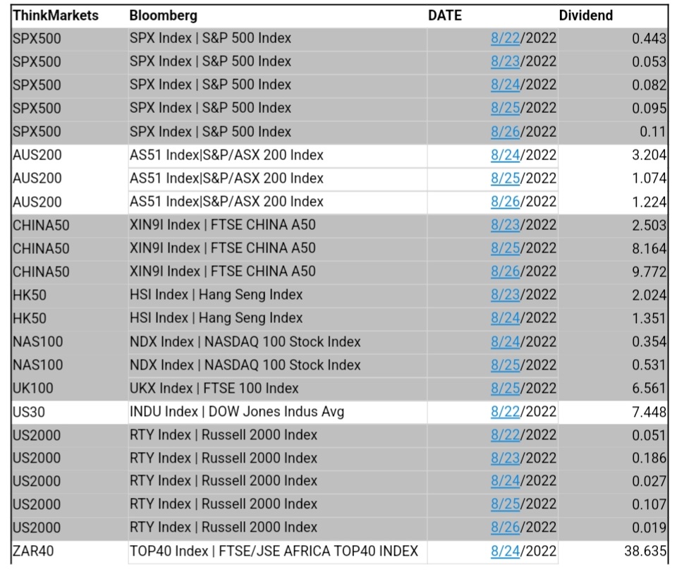 ThinkMarkets智汇平台CFD股指8月29-9月2日股息结算明细