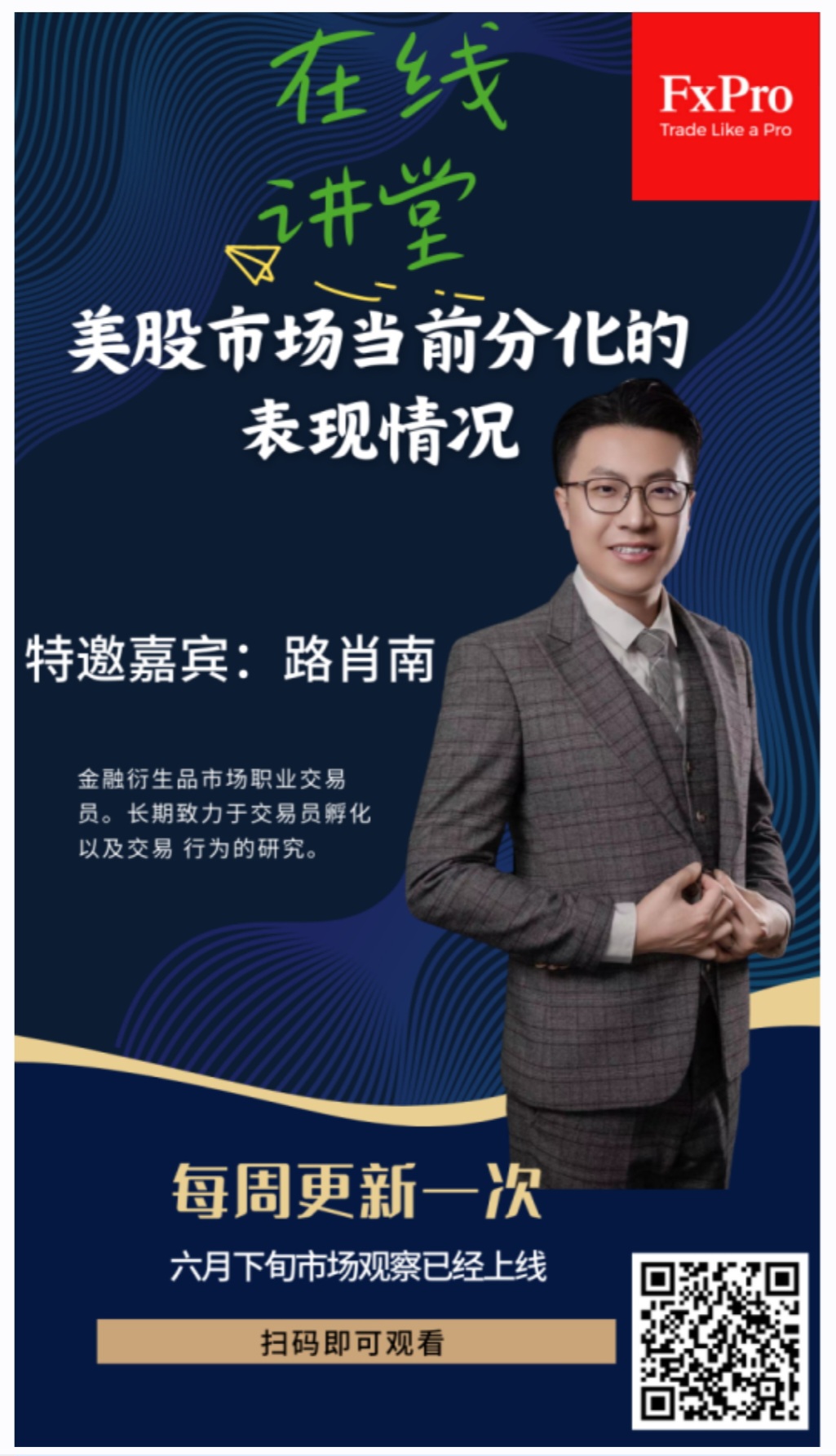 FxPro特邀嘉宾路肖南录播的六月下旬市场观察将分两期播放,本期为第二期,主要讲解美股市场当前分化的表现情况,扫码即可观看