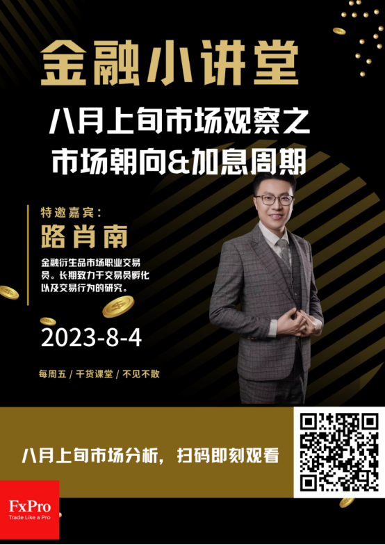FxPro特邀嘉宾路肖南录播的八月上旬市场观察将分两期播放,本期为第一期,主要通过复苏,衰退以及软着陆分析市场朝向并详细讲解加息周期,扫码即可观看。